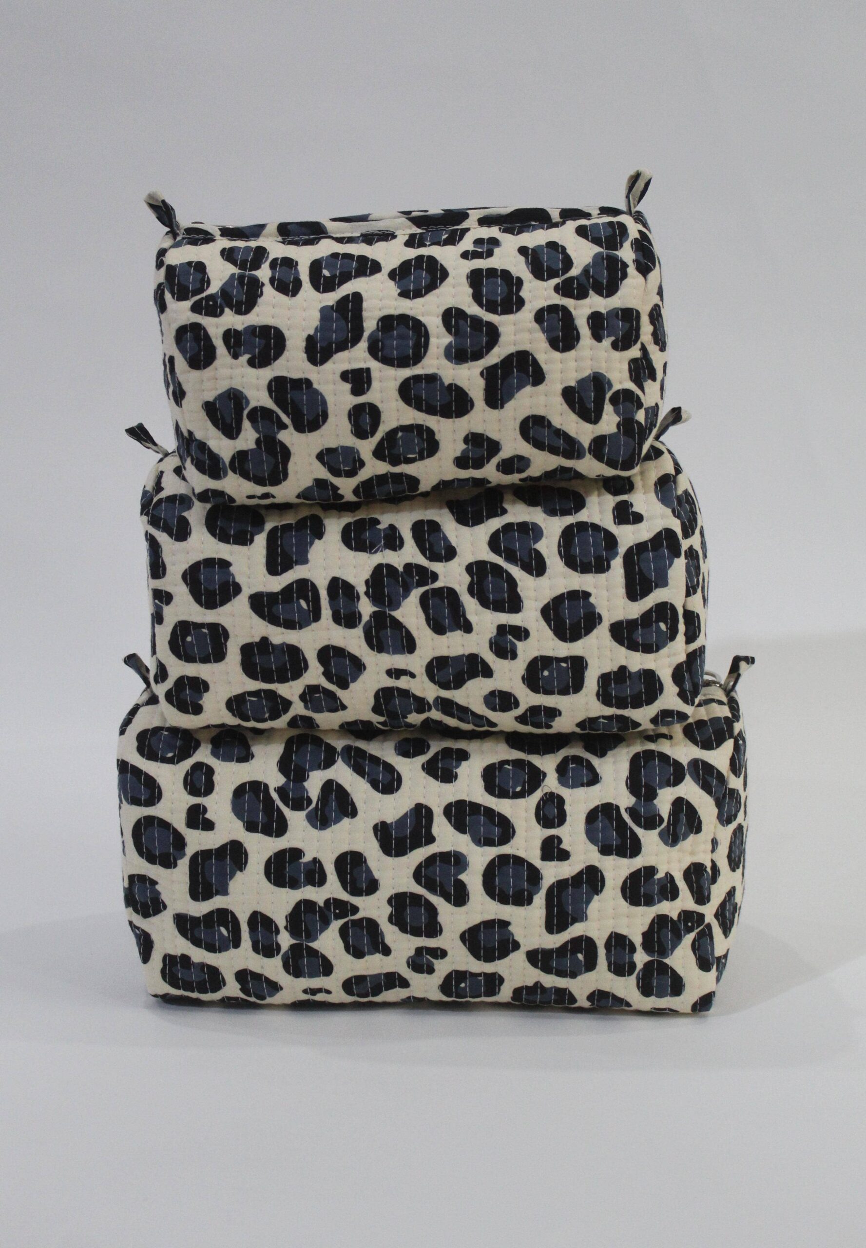 Blue Leopard Print Cotton Travel/ Makeup Bag/Cosmetic Bag