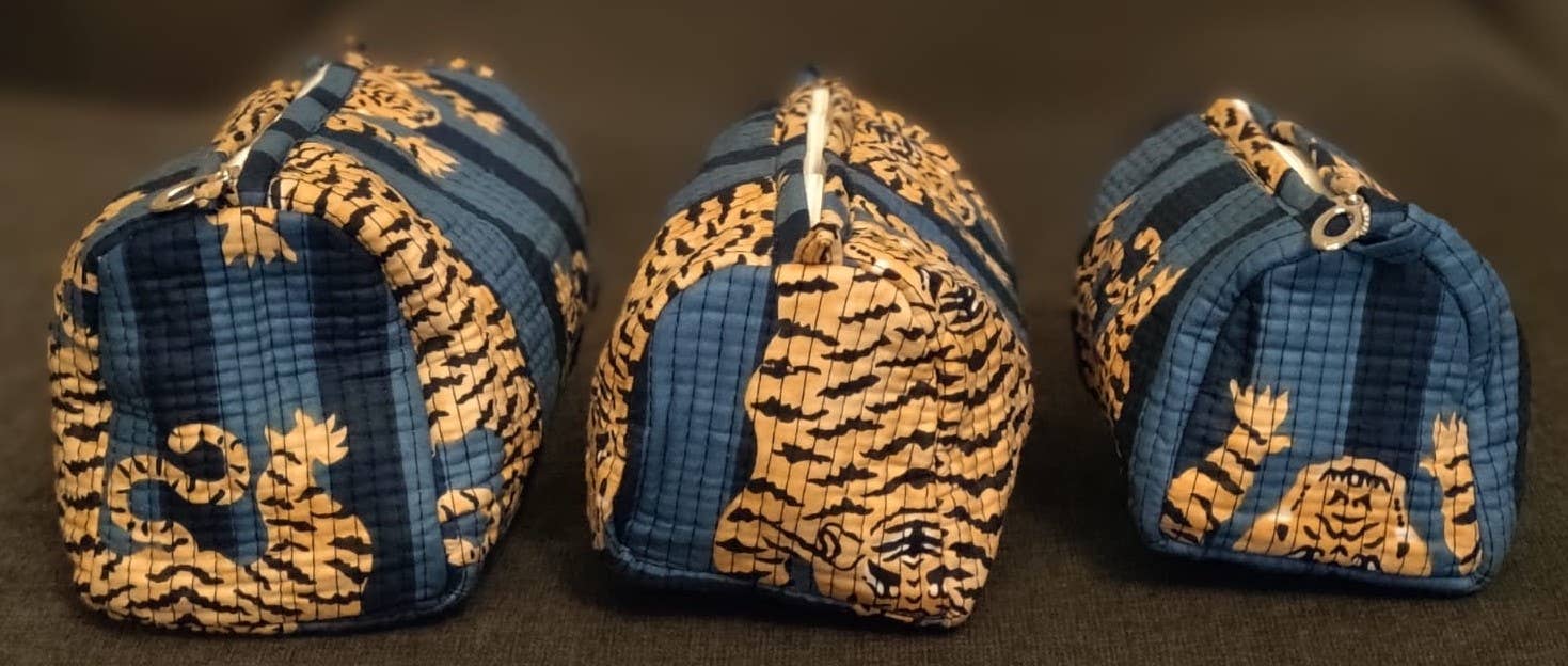 Bold and beautiful, our Dark Blue Tiger Quilted Bag Set makes organization effortlessly stylish. Handcrafted from soft cotton with striking tiger motifs on deep indigo blue, each bag is quilted for structure and durability.