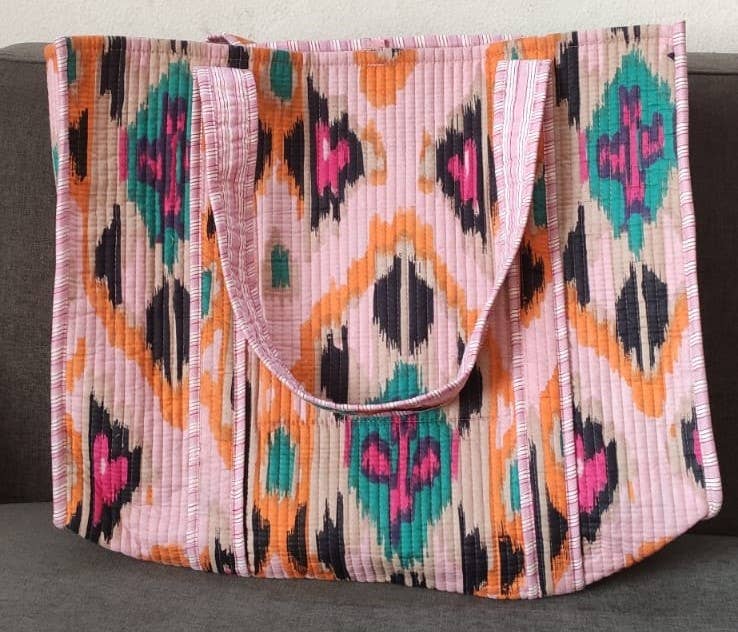 Our Light Pink Ikkat Cotton Quilted Tote Bag is the perfect combination of style and function.
