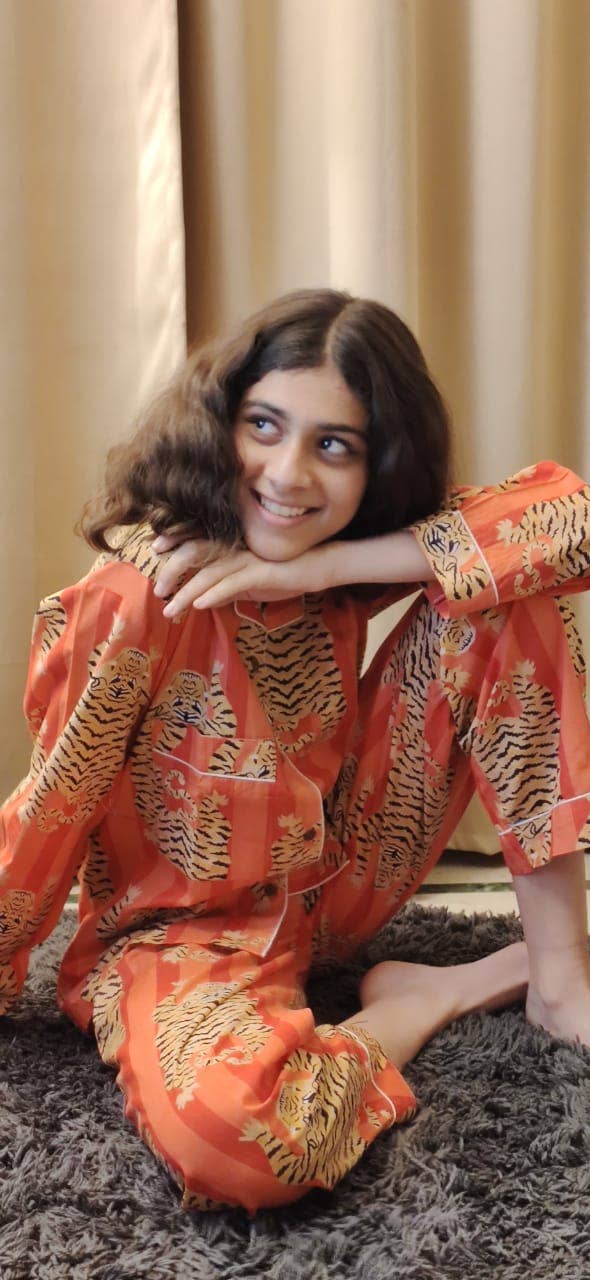 Be the first to review “Orange Tiger Print Long Pyjamas Set”