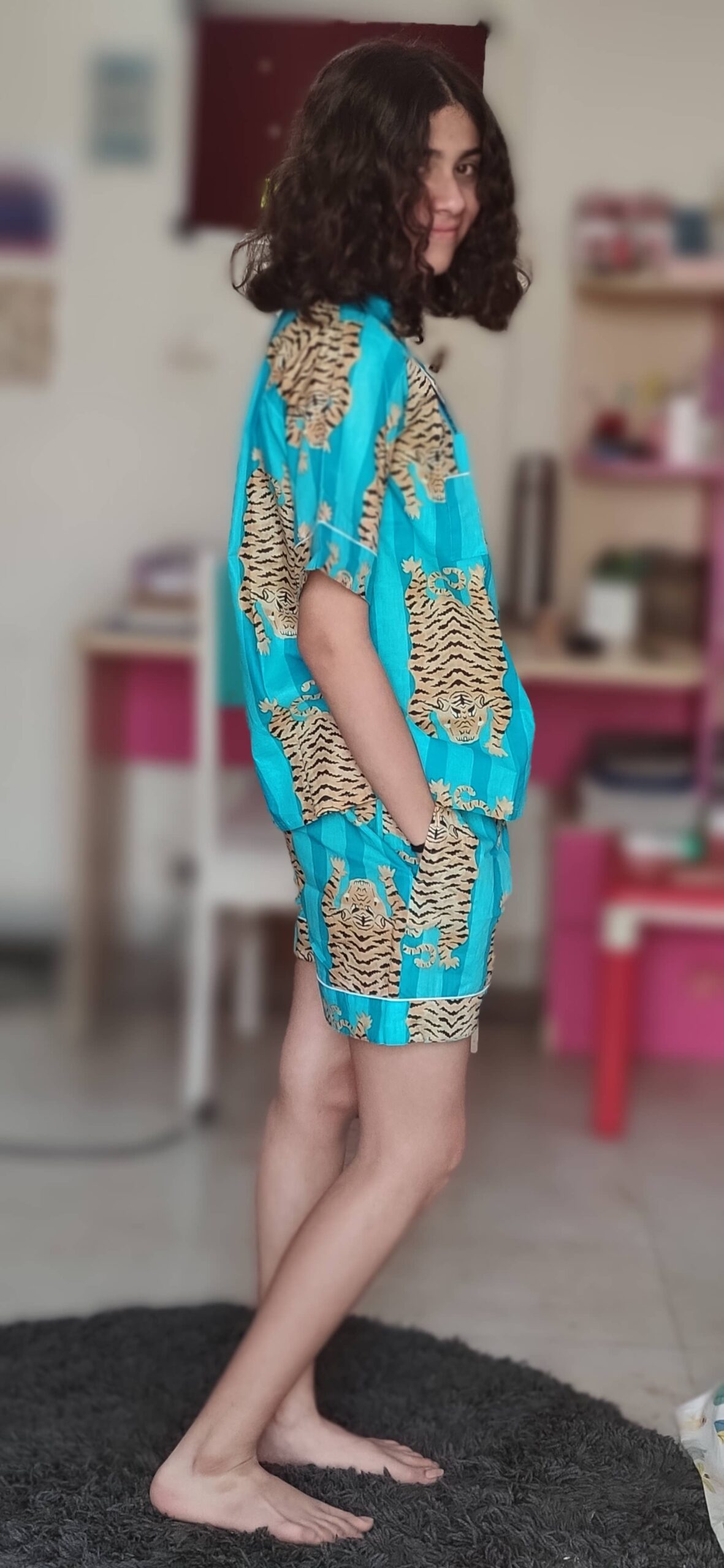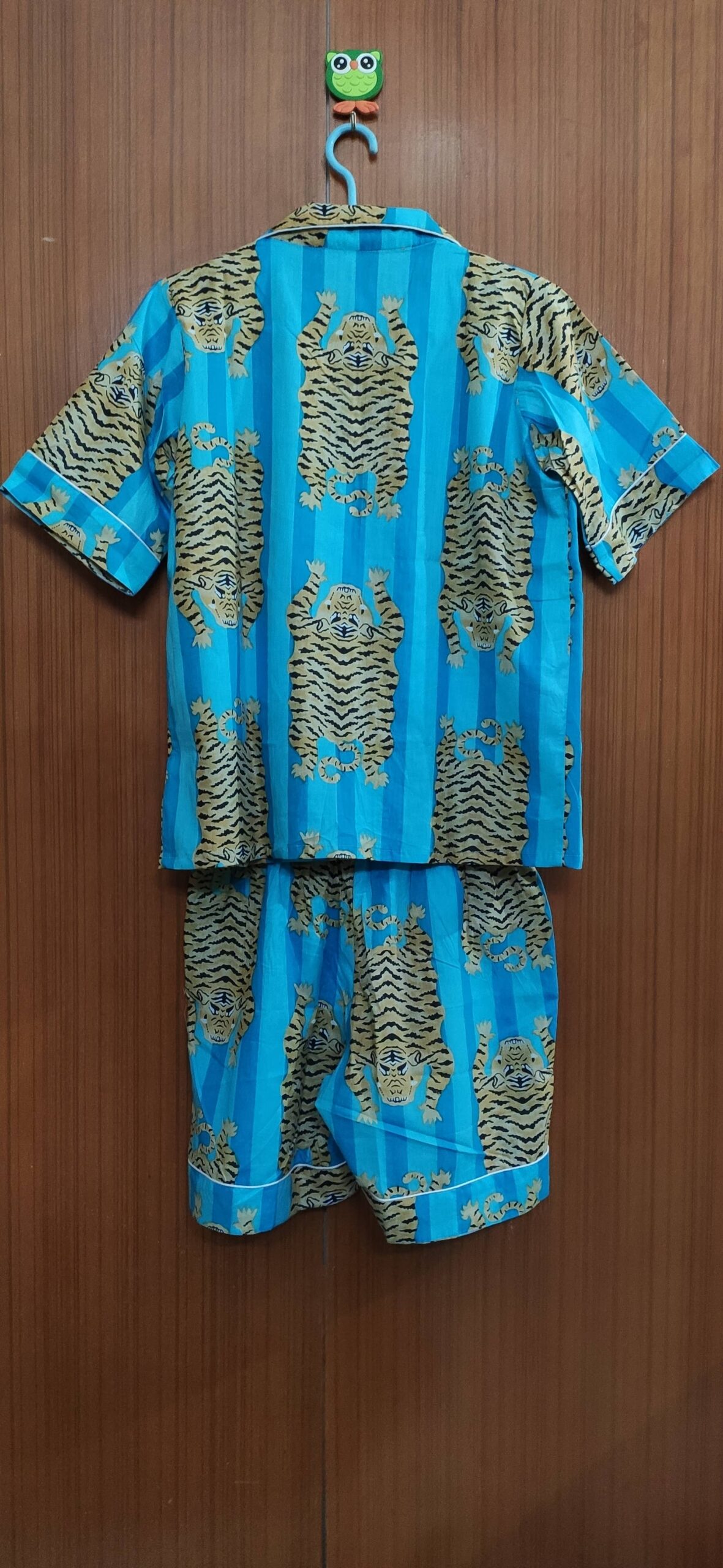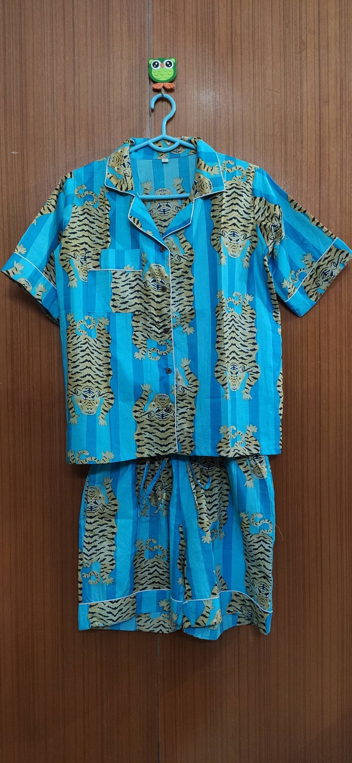 Our cotton printed shorts PJ sets are crafted from soft, breathable cotton for ultimate comfort. The set includes a half-sleeve button-down shirt and matching shorts with an elastic waist and pockets. Each set comes neatly packed in a matching fabric bag.