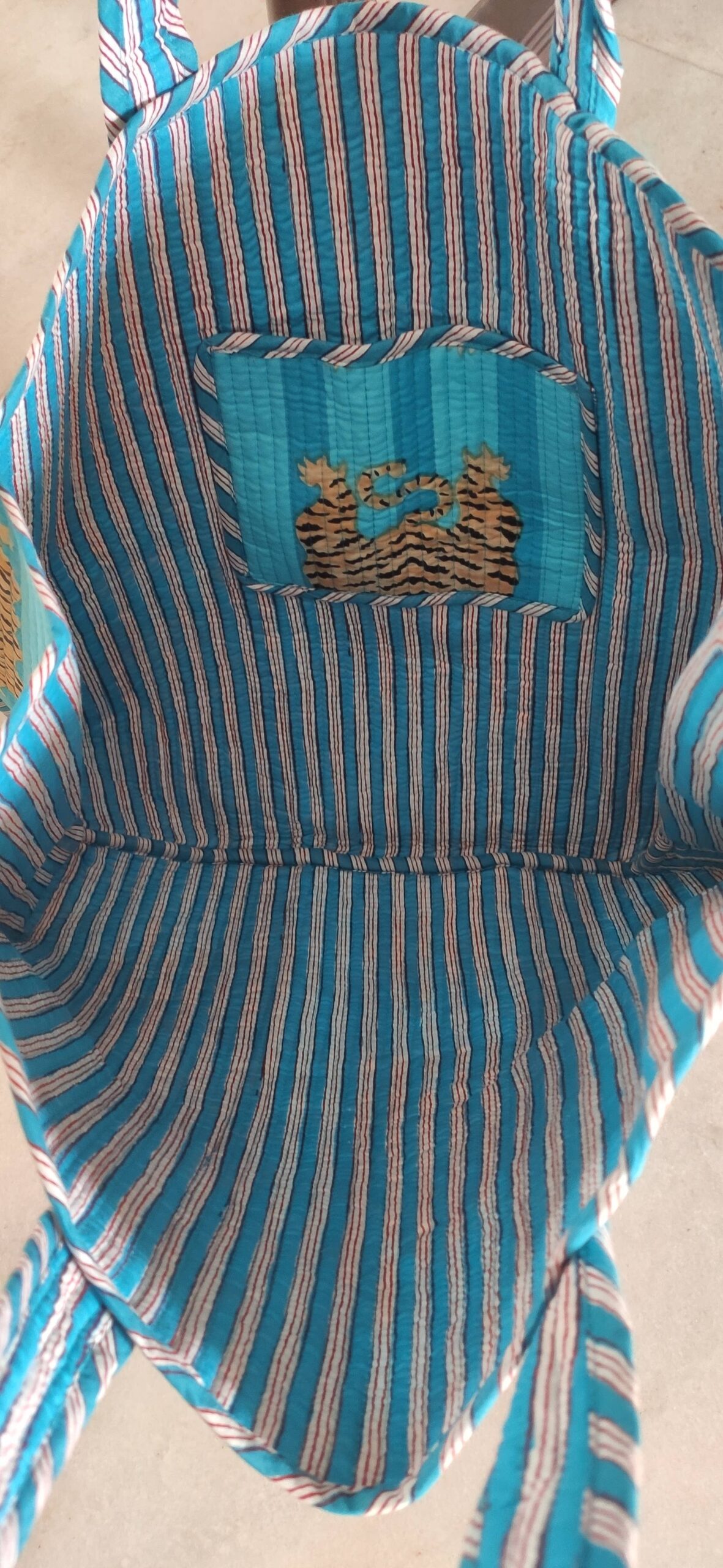 Our Turquoise Blue Tiger Cotton Quilted Tote Bag is the perfect combination of style and function.